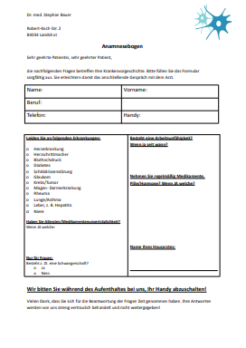 gerne können Sie den Anamnesebogen und den Datenschutzbogen ausdrucken und ausgefüllt zu Ihrem ersten Termin in unserer Praxis mitnehmen. Wenn Sie nicht über eine Möglichkeit verfügen, die Formulare auszudrucken, händigen wir Sie ihnen aber auch gerne bei Ihrem Termin in der Praxis aus.